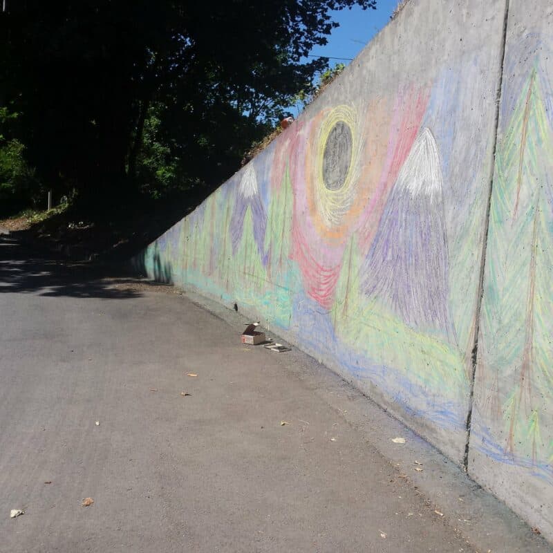 Treat any smooth concrete surface as a possible chalk mural site. Yes, it will wash away in the next rains, but placemaking doesn’t have to be permanent. It’s the activity and visible change that matter. You can always replace it with a new chalk design next time.