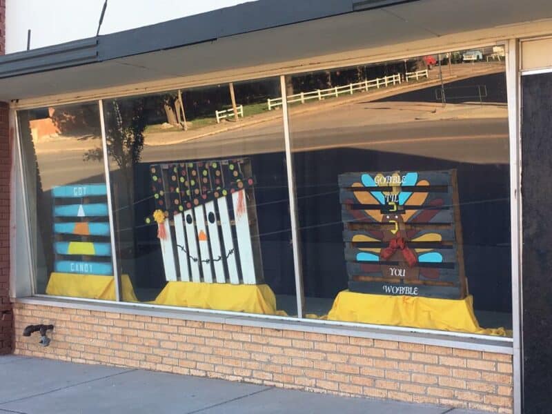 Pallets can usually be scrounged up at no cost, then painted for quick inexpensive art. Photo by Harmon County Forward, used by permission.