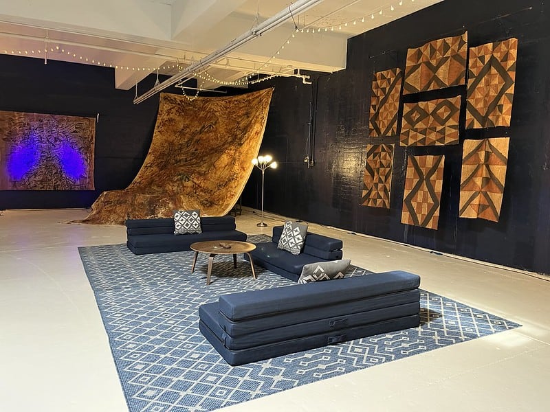 The art is from local artists. Many of the earth-toned wall hangings are dyed with the actual dirt from this neighborhood, that’s how rooted this is in the community.