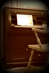 [Photo of my desk, from my Flickr.]