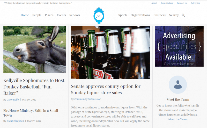 Look for a way to fill a need that your town already has. This whole ordeal would never have worked as well or as quickly if there hadn’t been a vacuum in the area of online news for my community. With so many directions that I could’ve gone with my skills as web designer and developer, creating Sapulpa Times was the one that made the most sense, and what I was most excited about. Try to find a way to fill a real need that your town has, and once you’ve found it…