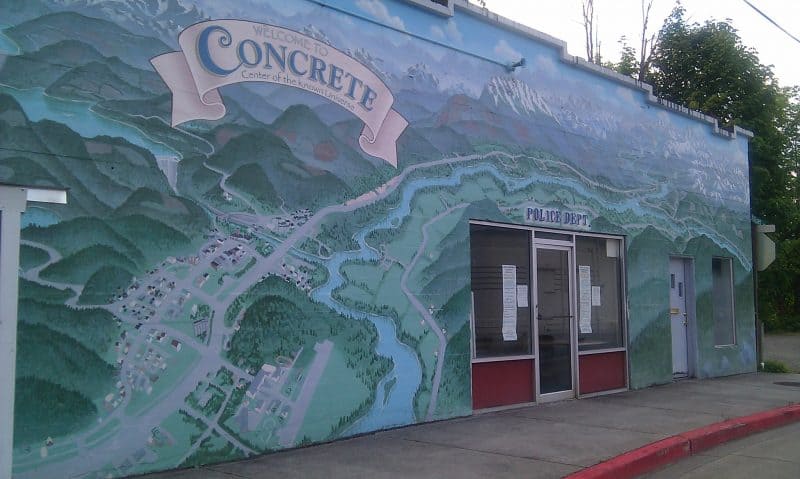 If wayfinding signs aren’t allowed, how about an artistic map mural? Here Concrete, Washington, lays claim on being the Center of the Known Universe. This mural led me to discover the historic concrete bridge at the edge of town which was well worth a visit for an infrastructure nerd.
