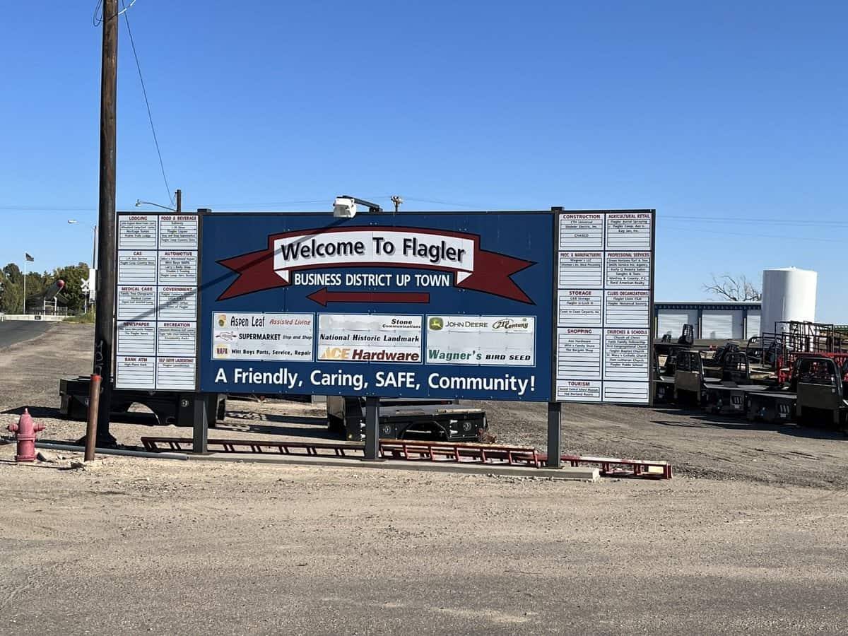 This wayfinding sign is not far from the EV charging station shown at the top of this article. It’s in Flagler, Colorado, and includes an easily-updateable list of businesses and a pointer to the business district.